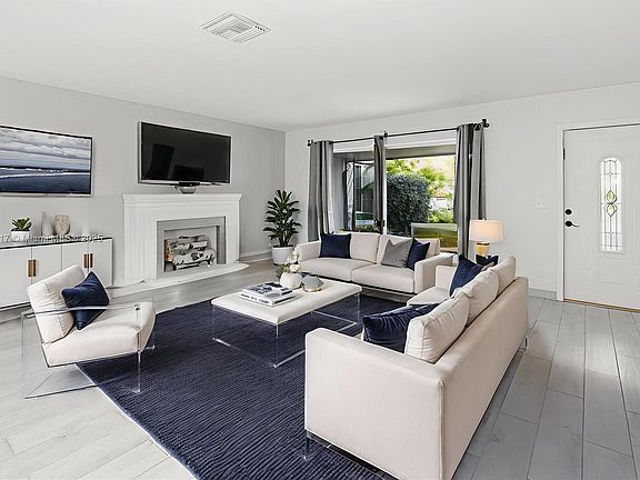Charming and versatile 3-bedroom, 2-bath home on a flexible layout with guest quarters or easy single-family use. Additional den for work or relaxation. New roof and A/C. Beautifully updated kitchen with quartz countertops, grey cabinetry, stainless steel appliances, and gas stove. Porcelain tile throughout, with wood-look porcelain in the living areas. Bathrooms finished with porcelain walls and walk-in shower. Alley-access parking for four cars, two-car carport, circular driveway, and fenced backyard with space for a pool. Well-maintained property offering style, comfort, and potential.