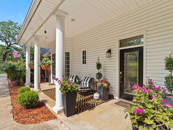 Welcome to this exquisite one-owner home, designed to impress with its smart, modern updates to a classic Fillmore design -- providing a distinct “wow factor.” Nestled on 2.75 oak tree-covered acres within Ada’s southern-most city limits, this property offers both tranquility and convenience. The recently remodeled kitchen is fabulous, boasting black quartz countertops, stainless steel Samsung appliances, and puck-light accented floating shelves. The elegance of Mohawk hardwood floors flows throughout the home, complemented by Hunter Douglas blinds, including automatic blinds in the master bedroom and living area. Unique ceiling fan features and beautiful lighting enhance the home’s modern appeal. Two living areas feature 14-foot vaulted ceilings to provide a spacious and comfortable feel. Step outside to the stunning westward-facing “game day” patio area, perfect for entertaining and Oklahoma sunsets. This outdoor space includes a Kitchen Aid natural gas-connected grill with hood, mini-fridge, icemaker, granite sink and countertops, a gas fireplace with multi-color lighting, and a cypress ceiling. It’s adaptable for every season but designed with fall college football in mind. The back yard features a new horizontal privacy fence on two sides, with iron on the back for unobstructed nature views. The master bedroom offers bay windows, a large walk-in closet, jet tub, and a tiled shower. Located just seconds from PPLSI and the Chickasaw Nation Medical Center, this quiet neighborhood offers a serene country feel while being mere minutes from downtown Ada’s local conveniences and shopping. Don’t miss the opportunity to make this home your own!