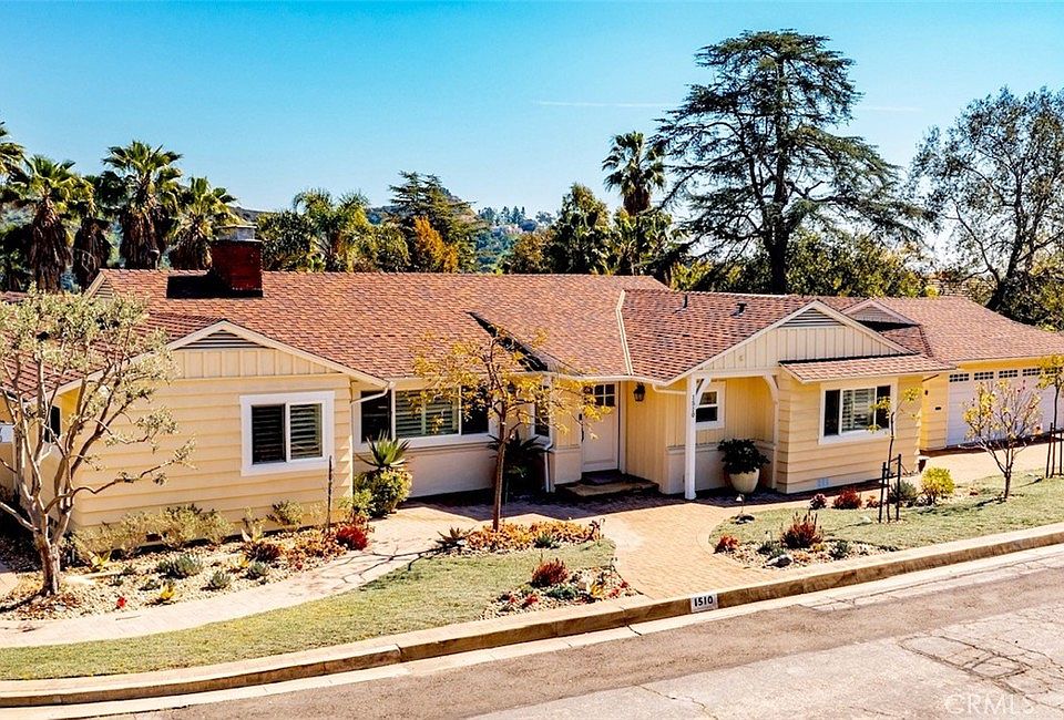 Experience the coveted California lifestyle in this luxuriously renovated home with spectacular grounds & pool in the Glendale hills. Renovated in 2011 - 2012 by the current owner, this single story traditional home is on a large 18,034 sq ft lot. The home received all new systems (HVAC, electrical, central vacuum) new roof, enlarged square footage in master and great rooms, remodeled kitchen & 4 bathrooms as well as a complete transformation of the property grounds. Newer windows and sliding doors plus solar panels also make this an energy efficient home. The central interior space was opened to incorporate a huge great room with areas for dining, TV viewing and formal gathering with fireplace. This room has a wall of windows & sliding door overlooking the pool and gardens. The kitchen features all SS Thermador appliances and a stunning 9 ft x 4 ft butcher block island for work space and casual dining. The primary bedroom is en-suite with a walk in custom closet room and spa worthy bath with dual sinks, handsome glass shower and soaking tub. Sliding glass doors open to the back yard. Two additional bedrooms each have an adjacent 3/4 bath. The park-like grounds are an oasis made for entertaining! Experience canyon views to the east & west with stunning xeriscape landscaping encompassing the entire property. Numerous entertainment areas in the rear yard include a 700+ sq ft patio in front of the heated salt water pool with raised spa, gazebo with built-in BBQ, rose garden and raised vegetable beds. A fourth bathroom is conveniently located off the Gazebo area outside. The large laundry room off kitchen has storage, sink and a side entrance. There is additional 144 sq ft storage room in the basement below the laundry. The over sided two car detached garage features storage shelves and newer garage opener. Majestic Way is a small street just up from the iconic Royal Blvd Historic District in the Royal Canyon neighborhood. Glendale offers award-winning schools with various foreign language immersion and arts & science magnet programs. Close to 2, 134 and 5 freeways with easy access to DTLA & studios.