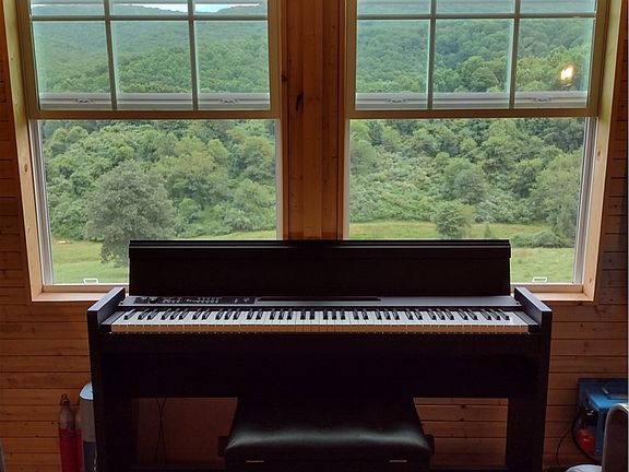 This 23-acre fully fenced retreat combines absolute privacy, luxury comfort, and true off-grid independence with million dollar Blue Ridge mountain views, 27-tree fruit orchard, significant creek frontage, next to a National Forest. Sold fully furnished and turnkey with fully functional, year round, off-grid systems. The main cabin has been completely remodeled as of August 2025; Its custom-built with premium finishes &entirely solar powered. Custom finishes include 3/4" tawny oak floors, spruce walls&ceilings, custom butcher block counters&trim, butcher block dining table, sliding barn doors, &bamboo blinds. +500-G rainwater collection system +2960W Solar Panel System&MPPT Charge Controller +Cut firewood for about two winters +Full-size 3-way silent refrigerator (DC, AC, or propane) +Champion 10,000W dual-fuel (gas or propane) standby generator &custom generator-to-house switching station Remarks Landscaping-fenced for cattle Water supply-storage Sewer-leech fields Internet-hotspot