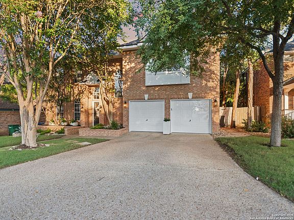 In one of San Antonio's most prestigious neighborhoods, centrally located Deerfield, sits an updated 4-bed, 3.5-bath home featuring wood and travertine flooring, brand new carpet, Restoration Hardware and Pottery Barn drapes and light fixtures, gourmet kitchen with gas cooking, fireplace, greenbelt views and move-in ready condition. First floor features open living areas, separate dining room, laundry room and powder bath. Kitchen updates include JennAir gas stove, new Bosch microwave and oven. Upstairs you will find a game room, the primary bedroom, an ensuite bedroom plus 2 beds and another full bath. All secondary baths have been updated with floor-to-ceiling high-end tile and marble selections and countertops. Master suite is complete with a walk-in shower, garden tub, his/her vanity and large walk-in closet with California Closet systems. Floor-to-ceiling windows brighten every room with natural light. Most bedrooms have walk-in closets. 2-car garage has space for storage. The backyard is a private oasis, backing to a tranquil greenbelt. It is perfect for families and entertaining with mature trees providing an abundance of natural beauty and welcomed shade. The Deerfield Neighborhood features an olympic-style pool with kid's swim league, tennis courts, pickleball and sports courts. Close proximity to the Salado Creek Greenway for miles of paved trails for running or biking. Roof replaced in 2021. Water heater replaced in 2025. LG washer and dryer convey with the property as does the Samsung smart refrigerator.