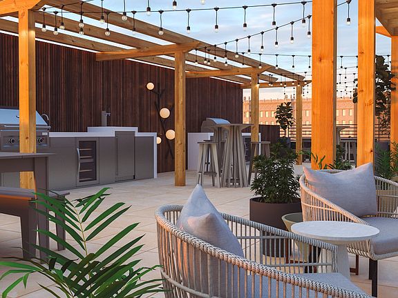 - Exterior features: BBQ/Picnic Area, Bicycle storage, Closet, Green Building, Online Rent Payment, Package Receiving, Sundeck, TV Lounge