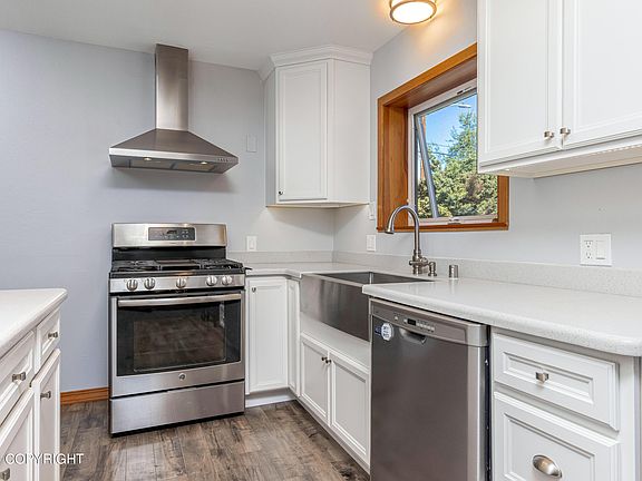 This nearly 2,000 SF ranch with a basement is in exceptional condition. The owner has made many upgrades, including remodeled bathrooms, new carpet, and flooring. The main floor has 2 bedrooms, with a downstairs bedroom to code with an egress window. Features include a 12x12 laundry/utility room, a 384 SF one-car garage, a 14x16 shed with electricity and gas, an RV pad, and new windows throughouta newer furnace, and a hot water heater. The property includes a 384 SF one-car garage on an over 10,000 SF lot, and a 14x16 shed with electricity. The kitchen offers a full view of the Chugach range, and there are new windows throughout. This home is turnkey and ready for you!