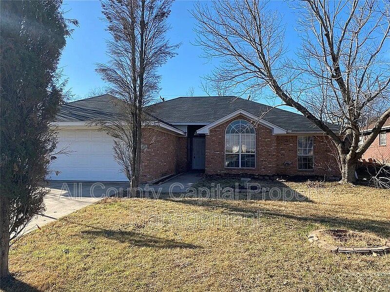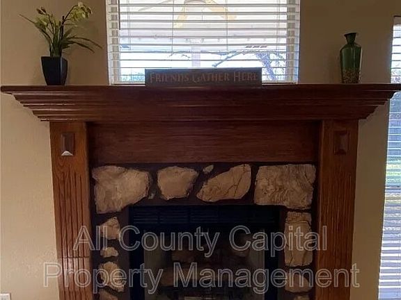 This three-bedroom, 1,573 sq ft home offers soaring ceilings, a stone gas fireplace, and a unique blend of tile and carpet in the living room. The kitchen features a side-by-side refrigerator, built-in microwave, stove, dishwasher, and double sink overlooking the backyard. Enjoy meals in the formal dining or cozy breakfast nook. The spacious primary suite includes a sitting area, double sinks, walk-in closet, jetted tub, and separate shower, with patio access to a shaded backyard framed by mature Texas trees. Updates include a new roof and interior paint in 2023.