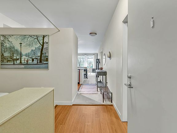 Wonderful light filled condo on 1-level (no stairs access). Features 1 Bedroom/1 full bath plus a Den. Building features secure access via lobby entrance w/elevator or stairs or parking garage, 1 parking space (compact size) Unit is on the secure garden courtyard level, patio w/sunny patio exposure. Kitchen w/granite & stainless appliances (gas range). Den features a professionally installed Murphy Bed. Bathroom has luxuriously deep tub. This great building features BBQ's, an exercise room, a Community Room, a Roof Top Pea Patch, a Fire Pit area. You can walk to the Transit Center, shopping, restaurants. Just steps from the weekly Farmer's Market, library and a small dog park. Plus, you'll love the friendly neighbors and welcoming atmosphere! *could be furnished or un-furnished* ONE parking space assigned with a wall mounted storage cage. -Minutes to SeaTac airport via Uber/Lift/Taxi
