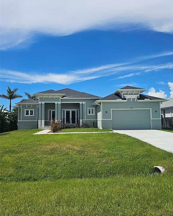 Brand-new waterfront 4-bedroom, 3.5-bath home in South Gulf Cove with boat access. This custom-built residence features an open floor plan, high ceilings, and designer finishes throughout. The kitchen includes quartz countertops, stainless steel appliances, and a large island ideal for entertaining. The primary suite offers dual vanities, a walk-in shower, and generous closet space. Additional bedrooms provide comfort and flexibility for family or guests. The backyard overlooks a canal with a concrete seawall and direct access to Charlotte Harbor and the Gulf. Located in the desirable South Gulf Cove community, close to beaches, golf, dining, and shopping.