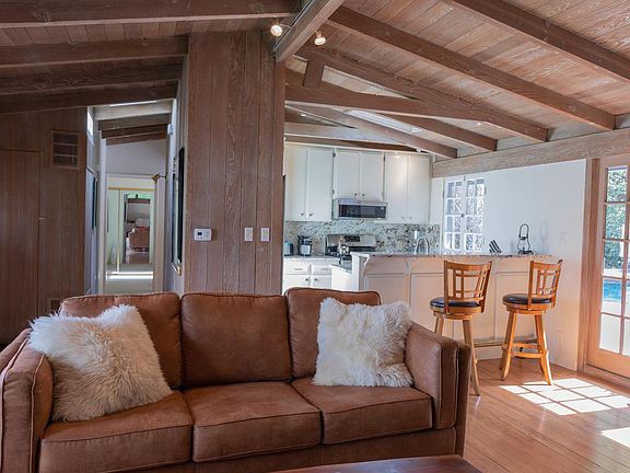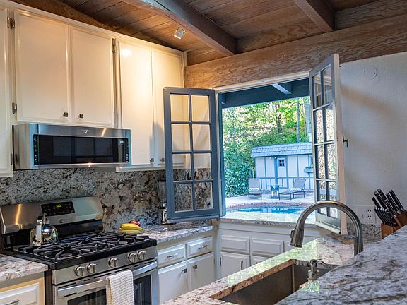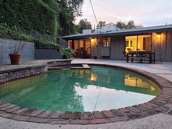 Private single family pool/spa home, south of the Boulevard, quick jump over the 405 or Woodcliff to westside. Prime Sherman Oaks neighborhood, and very charming. Best priced home with pool/entertainers yard south of the boulevard in Sherman Oaks or Studio City area. Recently remodeled very attractive kitchen with custom stone counters and backsplash, white lacquer cabinets, 12 x 24 porcelain floor, deep stainless sink/faucet and all stainless appliances. All appliances included (stainless refrigerator, built in microwave and dishwasher, washer/dryer). Pool/spa with large entertainers yard in park like setting, on a quiet street, yet walking distance to Ventura Blvd with great restaurants and shopping. Home is mid century style and has high sand blasted wood beamed ceilings, 3 skylights and real hardwood floors. Picture windows look out to the scenic views of greenery and city/mountains. Living room and dining area with brick fireplace, is attached to the kitchen with breakfast bar and looks out to the picturesque yard. Master suite is all windows/glass, is oversized and stepped down, with small home office area and city/mountain views. Second bedroom has pool views and opens to the backyard. Central air/heating. 2 car covered carport with very large, walk in floor to ceiling storage. Rare large, lush and private yard for a property in the hills. Park like setting with sounds of birds and squirrels running around yet minutes to two major freeways (405 and 101). Equipped with ADT full alarm service (can activate account) 14 miles from LAX International Airport. Upscale neighborhood surrounded by multi-million dollar custom homes/estates. Located just over the hill from Beverly Hills/Westside. Centrally located to get to best LA places, Sanctuary in the city! Move in costs- 1st month's rent, last month's rent plus 1 month security deposit. No smoking allowed inside of home. Rent price is with no pets, pets considered case by case with additional monthly rent of $100 plus $1000 per pet. Good credit and proof of income/reserves required.