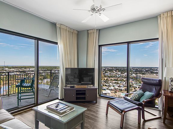 Offered at an unbeatable price, this beautifully maintained & fully furnished condo at Origin at Seahaven is a rare opportunity to own a coastal retreat below market value. Located on the 15th floor, this unit offers views of West Bay and partial gulf views, making it a unique blend of beachside and bayfront living. The 2 bedroom, 2 bathroom condo features an open-concept layout with large windows that flood the space with natural light. There are balconies in the living area as well as the primary bedroom where you can relax and enjoy the serene surroundings.