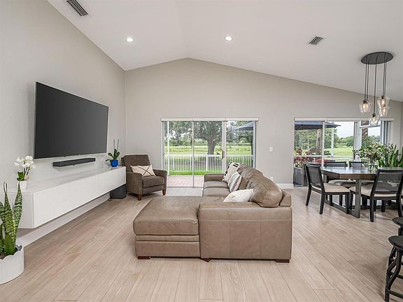 Fenced yardQuartz topsHigh ceilingsLake and golf viewsNew kitchenHurricane impact windowsHuge screened in patio