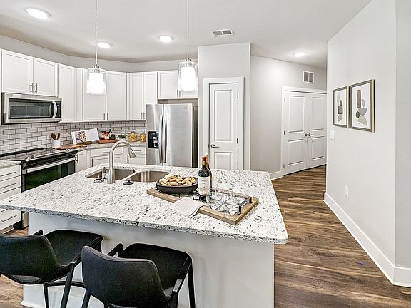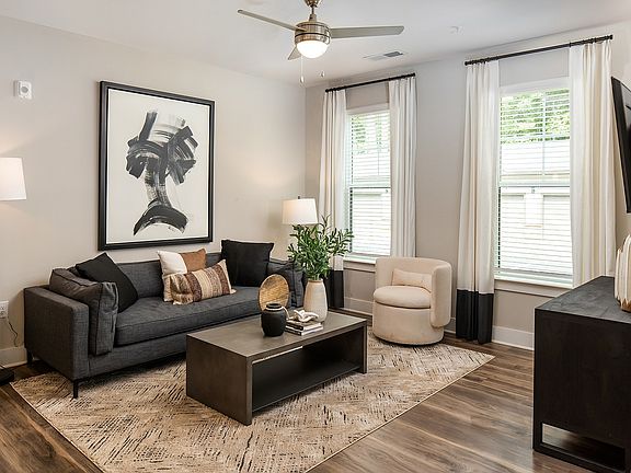 Welcome to the Buckhorn Floor Plan, a thoughtfully designed 1 bed 1 bath living space in the heart of Raleigh. Spanning 734 sq ft, this apartment offers a blend of comfort and modern living. Enjoy high-end amenities with a focus on convenience and style, from the designer kitchen to the spacious living areas. Embrace the vibrant Raleigh lifestyle, with attractions just moments away. Contact us today to schedule your tour of this outstanding floor plan.