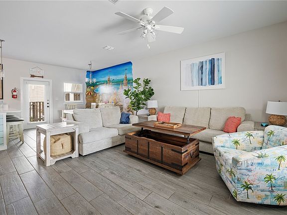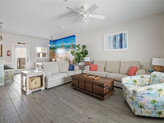 EFFORTLESS COMFORT ON THE TEXAS COAST...Welcome to your move-in or rental-ready beach retreat in the heart of North Padre Island! Great Short Term Rental - Average Gross income $6,922 a month. This charming, fully furnished 3-bedroom, 3-bath townhome is located in the highly sought-after Aruba Bay community—just a short 0.5-mile stroll to the pristine sands of Whitecap Beach. Inside, you'll find a spacious full-size kitchen, fully equipped for cooking and dining with ease. The open-concept living room invites relaxation with a smart TV and cozy seating, while each of the three bedrooms offers smart TVs and comfortable sleeping arrangements to accommodate up to 10 guests. Three full bathrooms ensure everyone has space to refresh and unwind. Enjoy the convenience of your own in-unit washer and dryer—perfect for keeping beach towels fresh—and two reserved parking spaces right at your front entrance. Resort-style amenities elevate your coastal lifestyle: two heated pools including a resort style pool designed for all ages with a water slide and sun deck, plus a splash pad pool ideal for young children. The clubhouse features a game room, pickleball and basketball courts, and a two-level deck overlooking the canal. Outdoor perks include picnic tables, charcoal grills, boat slip rentals, and a fish cleaning station. The location is unbeatable: walk to the beach, explore Mustang Island State Park, or venture out to Padre Island National Seashore (15 miles), Port Aransas (20 miles), downtown Corpus Christi (20 miles), and iconic attractions like the USS Lexington and Texas State Aquarium (26 miles). Whether you're seeking a personal getaway or a turnkey investment, this townhome delivers coastal living at its finest. Now, Come Coast Awhile...right here!