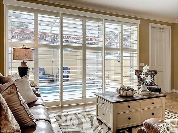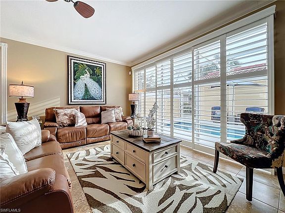 Well maintained, tastefully furnished and decorated Cayman Townhome with a private pool and double car garage available for purchase now. This 3 bedrooms/3 full bathroom DiVosta home offers two levels of living, with a southwest exposure that allows for natural sunlight and gorgeous sunsets. Triple sliding doors open to the private screened pool area, perfect for entertaining. The kitchen is equipped with new stainless-steel appliances, 42" raised panel cabinetry with under cabinet lighting and Corian countertops. The lower level offers the option of a full bedroom or den, with an ensuite full bath and walk-in closet and custom shelving. The second floor offers two spacious ensuites, one with a Juliet balcony, both with full baths and walk-in custom shelved closets. The full-size laundry room is equipped with a utility sink and conveniently located in the center of the second floor. Additional recent upgrades to the home include new tile roof (2024), new HVAC system (2021), kitchen appliances (2022), pool pump (2023), Plantation shutters (2021), exterior paint (2022) and garbage disposal (2024). This DiVosta built home is constructed with steel reinforced, poured - concrete block construction. Village Walk is rich with amenities. The village offers more than 20 miles of jogging/walking paths, lakes, resort-style pool, lap pool, lighted Har-Tru tennis courts, basketball and bocce ball courts, children's play area, gas station, shops, car wash, bank, post office, hair salon, restaurant, community rooms, library and a full-time activities director.