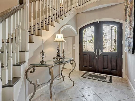 Stunning Reed Custom Home with open floor plan, large living room, office/study, open kitchen, and formal dining. Kitchen features gas cooktop, built-in refrigerator, and wet bar with wine cooler. Downstairs boasts a spacious primary ensuite with walk-in closet. Plantation shutters reveal a rock waterfall, outdoor kitchen, and expansive outdoor living space with gas grill directly plumbed. Putting green sits atop a swim spa, easily convertible.