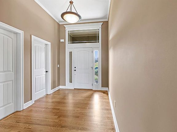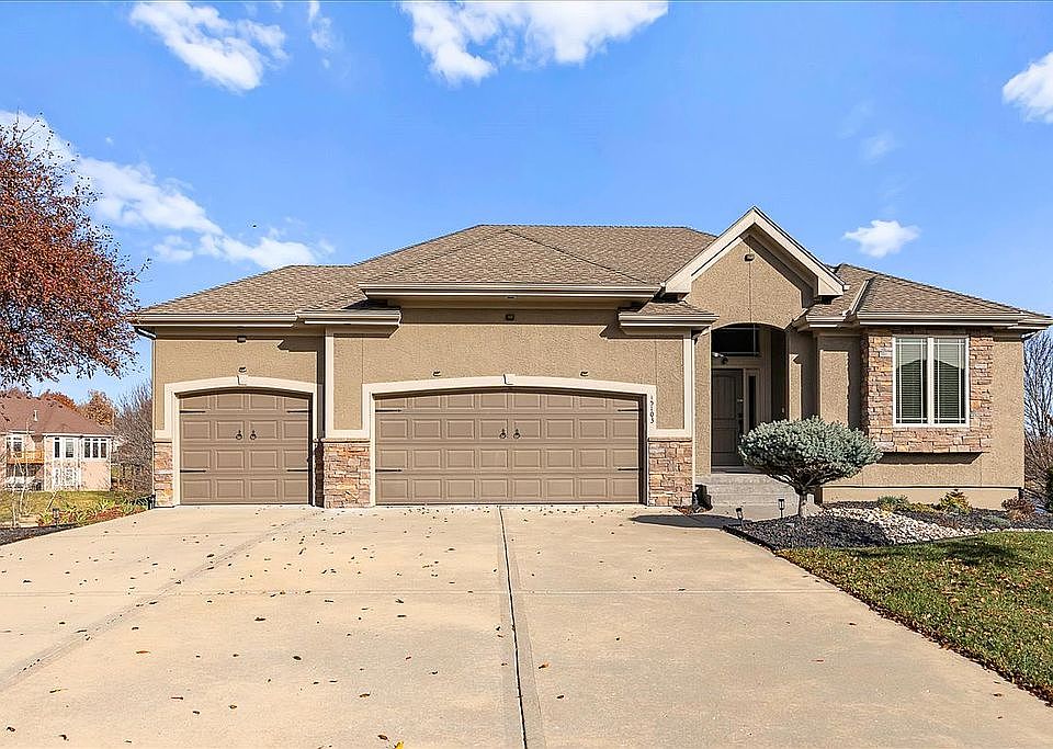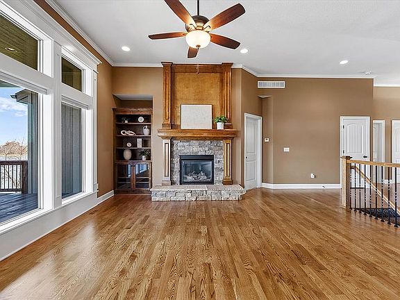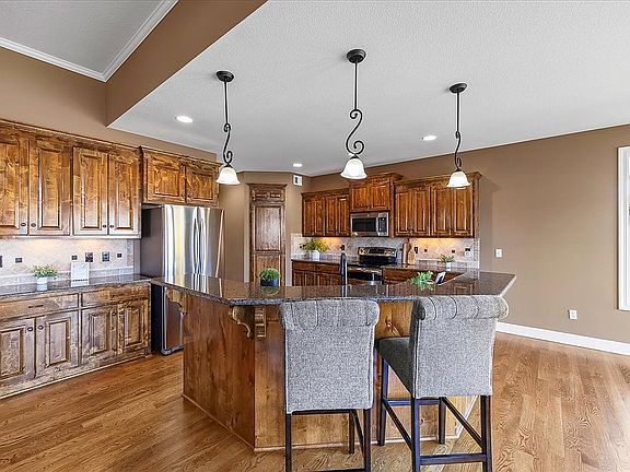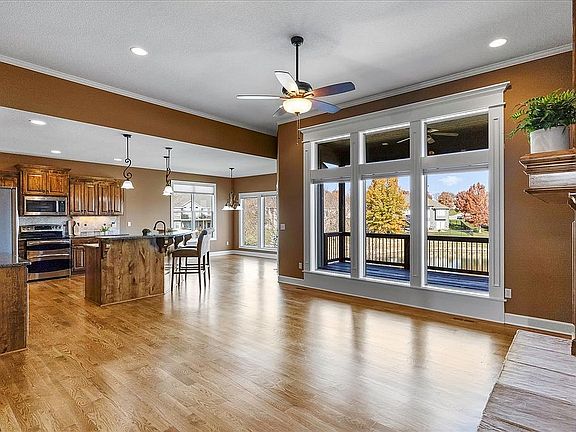 This beautifully maintained 4-bedroom, 3-bath ranch home offers over 2,950 finished sq ft with stunning lake views from nearly every angle. Enjoy sunsets from the large covered deck or entertain in the spacious, open floor plan filled with natural light. The kitchen features granite countertops, custom cabinetry, stainless steel appliances, and a walk-in pantry. The main-floor primary suite includes a new soaker tub and tiled walk-in shower, plus a generous walk-in closet. The finished walkout basement provides a large rec room and abundant storage. Additional highlights include hardwood floors, a 3-car garage, new water heater (2023), water softener, and an award-winning lawn. Neighborhood amenities include a community pool, walking trail, and backyard lake views. Move-in ready and truly better than new!