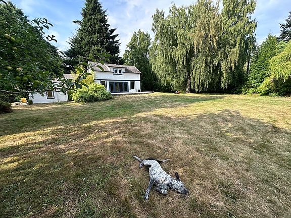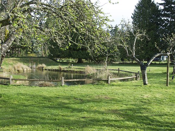 Outdoor Haven: Features a thriving fruit tree orchard, a duck pond that attracts fowl for bird lovers, an outdoor gas fire pit for barbeques and deep evening conversations, a separate fenced dog run, and open spaces for animals. Nearby Shinglemill hiking trails.