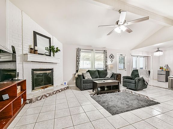 This move-in ready open concept home is full of charm and ready for its new owners! The spacious family room has a brick accented fireplace and is open to the dining room and kitchen. There is a service window to the kitchen a breakfast bar for informal dining. The kitchen features built-in stainless steel appliances and a five burner gas cooktop and oven. The spacious primary offers a relaxing retreat with a generously sized ensuite. Step outside to a large backyard with a covered patio ideal for relaxing or entertaining. Recent updates include: