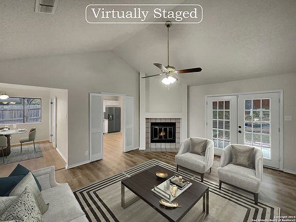 Your dream home is waiting for you! This home has Fresh Interior Paint, Fresh Exterior Paint, New flooring throughout the home. Discover a bright and open interior with plenty of natural light and a neutral color palette, complimented by a fireplace. The kitchen is ready for cooking with ample counter space and cabinets for storage. Head to the spacious primary suite with good layout and closet included. Other bedrooms provide nice flexible living space. The primary bathroom is fully equipped with a separate tub and shower, double sinks, and plenty of under sink storage. Take it easy in the fenced in back yard. The sitting area makes it great for BBQs! Don't wait! Make this beautiful home yours. This home has been virtually staged to illustrate its potential.