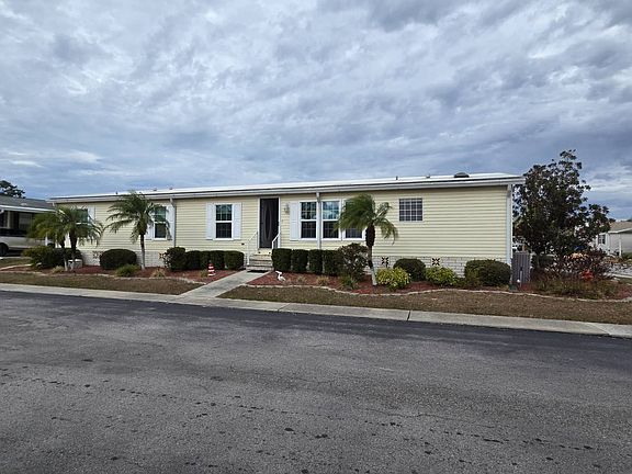 IF YOU ARE LOOKING FOR A BEAUTIFUL SPACIOUS 2100 SQ FT 4 BEDROOM/2 BATHROOM HOME IN A WELL KEPT COMMUNITY, THEN, THIS IS THE HOME FOR YOU! THIS HOME HAS BEEN LOVINGLY CARED FOR AND WELL MAINTAINED.THIS HOME IS READY TO MOVE INTO AND IS SITUATED ON A CORNER LOT NEAR THE FANTASTIC POOL AND CLUBHOUSE. THIS HOME FEATURES CROWN MOULDING THROUGHOUT. THE MASTER BATH IS A PERFECT SPA SIZE FEATURING A SKYLIGHT AND DOUBLE ENTRY DOORS WITH A GARDEN TUB, SEPARATE SHOWER AND AMPLE COUNTER SPACE WITH DOUBLE SINKS, CABINETS AND DRAWERS IN THE VANITY. THE MASTER BEDROOM IS CARPETED AND HAS A WALK IN CLOSET WHICH WILL FIT MORE THAN A PERSON NEEDS! THE HOME HAS A SPLIT FLOOR PLAN SO THE MASTER BEDROOM AND BATH IS ON ONE SIDE OF THE HOME AND THE OTHER 3 BEDROOMS AND GUEST BATH IS ON THE OPPOSITE SIDE. THE INSIDE LAUNDRY IS OFF THE OVERSIZED KITCHEN AND FEATURES A WORK SINK AND CABINETS FOR PLENTY OF STORAGE. THE KITCHEN BOASTS OF MANY CABINETS AND A CENTER WORK ISLAND PLUS A HUGE COUNTER AREA! THE DISHWASHER AND REFRIGERATOR ARE UNDER 2 YEARS OLD AND NEW AGE MICROWAVE IS 1 YEAR OLD. THE DINING ROOM IS SPACIOUS ENOUGH TO HAVE LARGE FAMILY DINNERS AND GET TOGETHERS WITH NO PROBLEM. THE LANAI OFF OF THE DINING ROOM IS BIG ENOUGH FOR A SMALL CONCERT!! THE SHED, LIKE THE HOME IS HUGE AND HAS AN AC UNIT TO KEEP YOU COOL WHILE YOU WORK! EXCEPT FOR THE MASTER BEDROOM AND LIVING ROOM, ALL THE FLOORS ARE LAMINATE AND NEW VINYL PLANKING. THE MAIN ENTRANCE DOOR TO THE HOME HAS A RETRACTABLE SCREEN DOOR TO ALLOW A NICE BREEZE IN WITHOUT PESKY SKEETERS. THE HOME IS LOCATED IN BRENTWOOD ESTATES, A 55+ SUN COMMUNITY WHERE YOU LEASE YOUR LOT. YOU CANNOT GO WRONG WITH THIS HOME! IT IS JUST WAITING FOR YOU! CALL VICKIE TO MAKE YOUR APPOINTMENT TODAY! DON'T WAIT!
