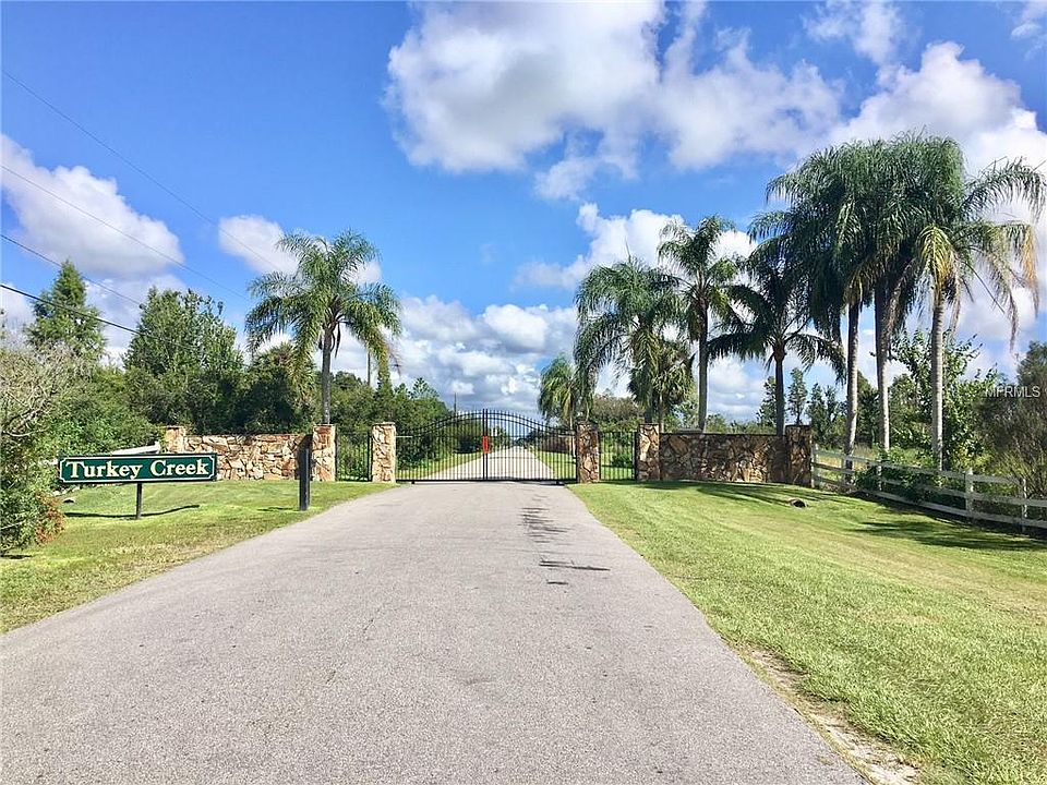 Over an ACRE of property in a beautiful gated subdivision with low HOA dues! Neighborhood has executive style homes! Every lot has a build-able site for a home and a warehouse/RV garage. You will enjoy the serenity, peace & quiet in this deed restricted neighborhood. Close to I-4 for easy commuting to Tampa & Orlando. High & dry land. Come build your DREAM HOME!!! WELCOME TO FLORIDA! (Home has horses & fences on property now, if buyer requests fences can be taken down prior to sale.) Minimum of 1800 sq foot home has to be built.