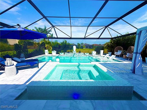 Marble fireplaceExtended covered lanaiWhite marble barCustom designer wall treatmentsSpectacular floor planOutdoor oasis