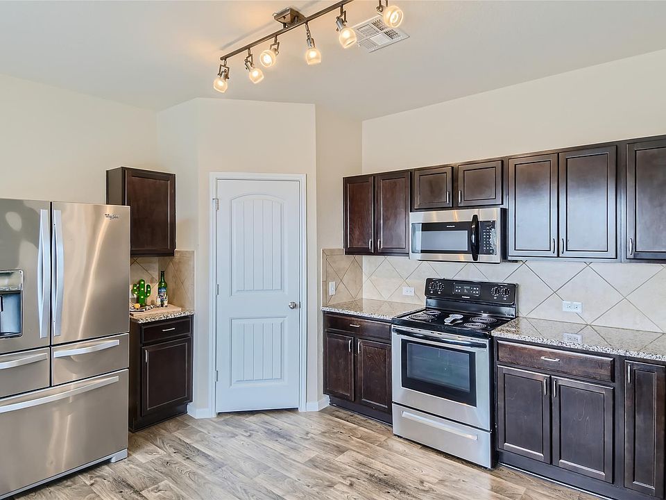 Modern vinyl plank flooringOpen floor planLarge backyard retreatUpdated fixturesCul-de-sac yardStreams of natural lightGranite counters