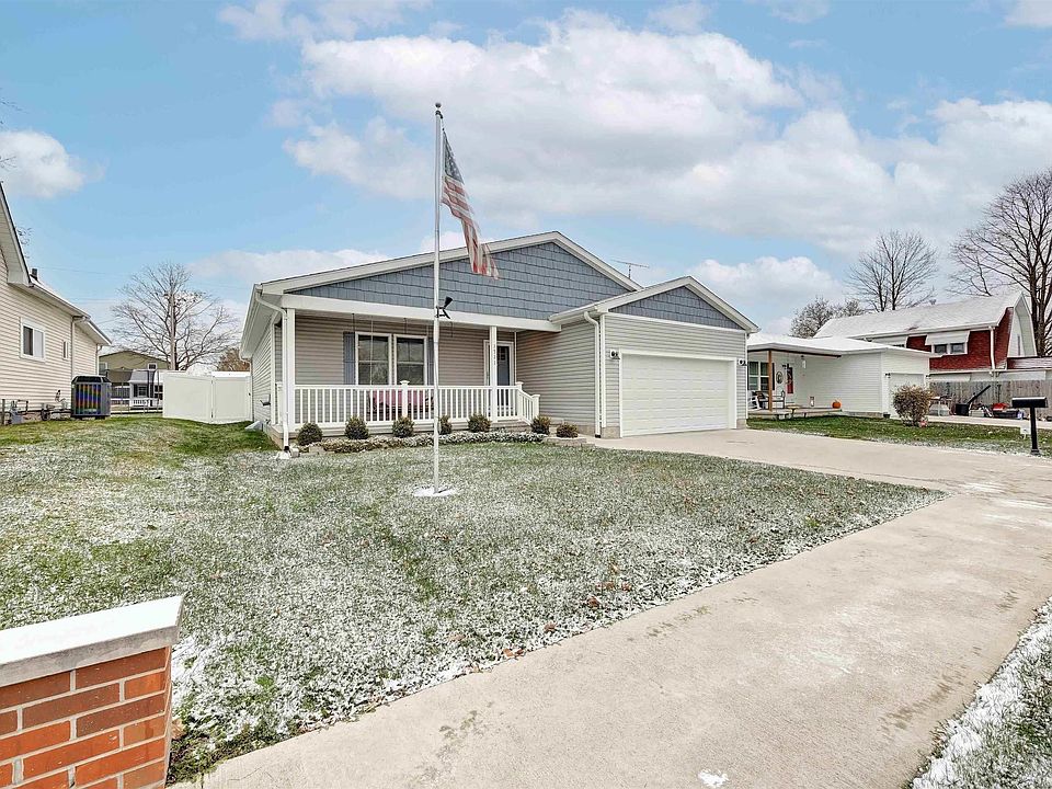 WELCOME HOME to this beautifully styled THREE bedroom, TWO bathroom newly built RANCH! From the moment you arrive, the inviting covered front porch sets the tone for the charm and elegance within. The spacious open-concept living room and kitchen area is perfect for entertaining, featuring granite countertops and a cozy dining nook with a lovely view of the backyard. Each bedroom is a retreat of its own, boasting large walk-in closets for ample storage. The primary master suite offers a luxurious custom tile shower and a double vanity, combining comfort with modern finishes. Step outside to enjoy the covered back porch, ideal for relaxing evenings or weekend gatherings offering plenty of privacy with your fenced in yard. For your convenience, the home includes a TWO car attached garage as well as a TWO car detached garage. Home comes complete with kitchen appliances, washer, and dryer. Some of the most recent updates include: porch banister, front storm door, kitchen pantry cabinet, vinyl fencing, paint on back garage and outside doors, upgraded toilets to save water, frost free water faucets outside, and blinds in the whole house and on the front and back porch. Utilities available are: Duke and Bedford City Utilities. Home has the possibility of qualifying for 100% USDA financing. This home is loaded with stylish finishes and thoughtful details throughout. Don't miss the opportunity to make it yours!