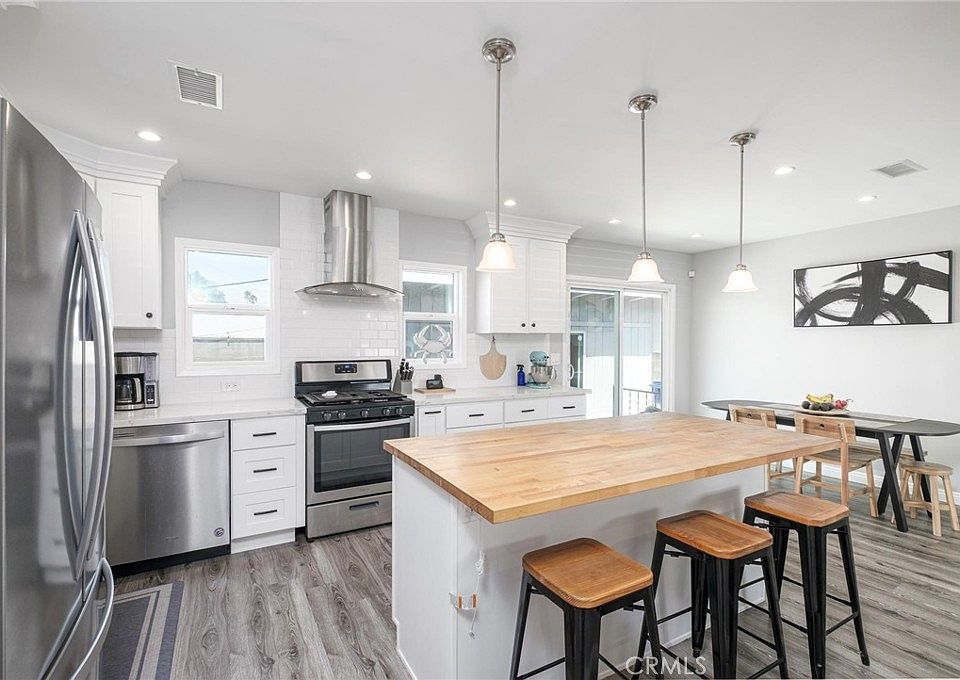 This beautifully reimagined 3-bedroom, 2-bathroom home offers 1,453 sq. ft. of versatile living space, including a 1,053 sq. ft. main home PLUS an additional 400 sq. ft. of flexible bonus space (buyer to verify). Recently remodeled from top to bottom, this home delivers a fresh, modern living experience with an open-concept design, where the living room flows seamlessly into a thoughtfully updated kitchen and dining area. Inside, the fully remodeled kitchen, brand new primary ensuite bathroom, new engineered wood floors, and updated systems make this home truly move-in ready. Step outside to a spacious backyard and the bonus space that functions as a mancave, she-shed, or extra living area (permitted as storage but converted for entertaining). Whether you're hosting gatherings, BBQs, or simply unwinding, this additional space provides endless possibilities. Recent upgrades include a newer central heating and A/C system with updated ductwork, a newer composition shingle roof, recessed lighting, interior and exterior paint, an upgraded 100-amp electrical panel, and energy-efficient dual-pane windows. All stainless steel kitchen appliances are included for added convenience. For those looking for a stylish, turnkey home with modern updates and extra space, this property offers exceptional value and versatility.