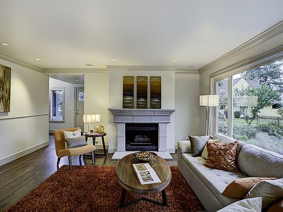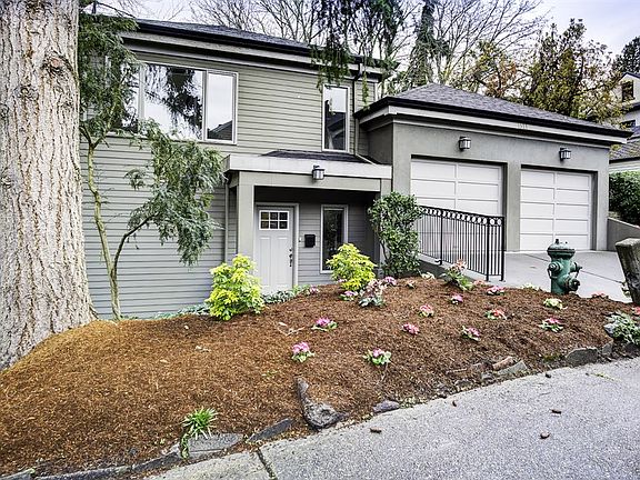 Contemporary and light filled in-city retreat above a scenic greenbelt, this Madrona home tucked between Lake Washington & Denny Blaine, has it all! 2-car garage, open floor plan, hardwoods, crown molding, 3 decks & rare central A/C! Main floor boasts large windows, a fireplace, formal dining rm & a stunning kitchen. Master Suite offers a 5 piece bath, 2 walk-in closets w/extensive built-ins. 4th bdrm can be a nursery or a study/den. Lower level offers 2 bdrm en-suites & a media or rec room.