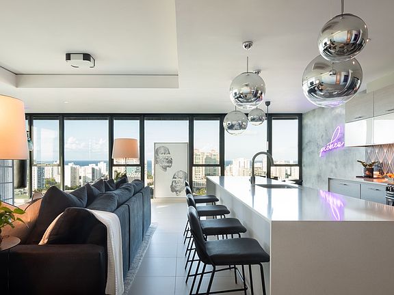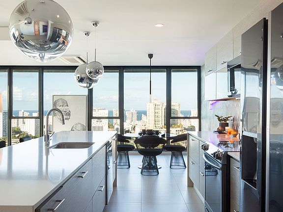 Experience upscale urban living in this stunning 2-bedroom, 2-bathroom fully furnished apartment located on a high floor in the exclusive Torre 1000 at Ciudadela, Santurce. With 1,520 sq ft of living space, this residence offers an open-concept layout, modern finishes, and elegant decor ideal for an executive or vibrant couple. The gourmet kitchen features high-quality cabinetry, stainless steel appliances, and a spacious island perfect for entertaining or enjoying casual meals. The living and dining areas are filled with natural light and offer breathtaking city views.Ciudadela provides unmatched convenience with 24/7 security, controlled access, full power generator, water cistern, on-site restaurants, cafes, gym, coworking spaces, and more. All within walking distance to El Pueblo supermarket, banks, wellness centers, and nightlife.