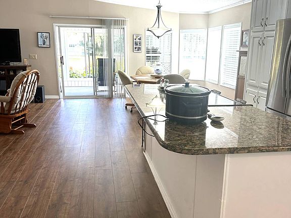 Welcome to this truly beautiful and completely remodeled 2-bedroom home, offering a level of serenity and stunning views that are simply amazing! From the moment you arrive, you'll feel the tranquility of your surroundings, which includes distant views of three different ponds and surrounding woods, ensuring exceptional privacy. Prime Exterior & Convenient Access: The property features a nice wide driveway with a carport and a useful, unattached shed. A convenient breezeway allows easy access to the private backyard, giving you direct access to the scenic views. Enter the home into a private foyer, separating the outside from the open living space. Remodeled Open Concept & Gourmet Kitchen: The home has been beautifully remodeled and features a gorgeous open concept encompassing the spacious living room, dining area, and kitchen-all offering serene views and natural light. All main areas flow together with beautiful hard surface flooring throughout. The kitchen is a chef's delight, showcasing gorgeous granite countertops and sleek stainless steel appliances. A stunning island with a cooktop stove allows you to be a part of the family conversations while preparing meals. Luxury Details & Serene Retreats: The home features attractive textured walls throughout. The primary bedroom is large enough to handle a California king-size bed and boasts wall-to-wall closets. The primary bathroom is a luxurious escape, featuring gorgeous granite, double sinks with waterfall faucets, a spacious shower, and a beautiful tub with a waterfall faucet-your perfect spot for serenity. The guest bathroom is equally updated with a high toilet and a beautiful shower. A private laundry room adds to the home's functionality. Structure & System Updates: This home has been exceptionally well taken care of and includes significant structural and system maintenance: Recently leveled and strapped (a major maintenance item ensuring stability and peace of mind). Roof: 2016 A/C: Well serviced Additional Perks: The home is offered UNFURNISHED. A golf cart is negotiable, offering a fun and easy way to enjoy the community. The rear features a bright sliding door entrance to the All Seasons Room with double-pane windows, leading to a patio perfect for grilling. Don't Miss This Amazing Opportunity! With its beautiful remodel, stunning views, and valuable structural updates, this home is a true gem. We will gladly do a video tour for you to see this amazing property! SCGC is a 55 plus, lot rent, 495 acres manufactured home community which includes a designed Championship 18-hole Golf Course. There is a 22,000 sq ft. clubhouse which houses a 427-seat ballroom for community events, concerts, plays, church services, dances etc. We have a Sports Bar and Grill, beauty shop, arts and crafts room, gift shop, library, fitness area, billiards room, men and women locker rooms with saunas and a full-service Golf Pro Shop. We also have 8 shuffleboard courts, two tennis courts, four pickle ball courts, two swimming pools and a ten-person whirlpool. Great central Florida location. We are a 45-minute drive to the Tampa International Airport, and a 50-minute drive to the Orlando International Airport. You can reach Bush Gardens-Tampa, Walt Disney World, Universal Studios-Orlando, Sea World, and Legoland of Florida all within 45 minutes of your home! With 90 minutes, you can enjoy the beaches of St. Petersburg-Clearwater, Sarasota, Bradenton on the Gulf of Mexico, or Daytona Beach, New Smyrna Beach, Cocoa Beach and the Space Coast on the Atlanta Ocean.