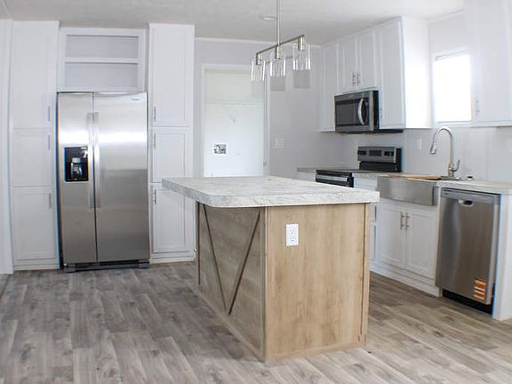 This 1568 square foot, 4.0 bed 2.0 bath Manufactured Home in Glenn Heights, TX is a modern and spacious residence built in 2025. The home features a cozy living room, a bright dining room, a luxurious master bedroom with an en suite bathroom and walk-in closet, and a fully equipped kitchen with stainless steel appliances including microwave over the flattop range. The exterior of the home includes a deck and covered porch, perfect for enjoying the outdoors. Inside, you'll be surprised by the finer finishings such as drywall, baseboards, coving, chair rails, pendant lighting over the barn style island and an electric fireplace in the living area for cozy evenings. Located in the peaceful community of Glenn Heights, residents of this manufactured home can enjoy a serene and family-friendly atmosphere. The community offers a range of amenities such as playgrounds, walking trails, and community events, making it an ideal place to raise a family or enjoy a quiet retirement. With close proximity to shopping, dining, and entertainment options, as well as easy access to major highways for convenient commuting, Glenn Heights provides a perfect balance of suburban living and city convenience for its residents.
