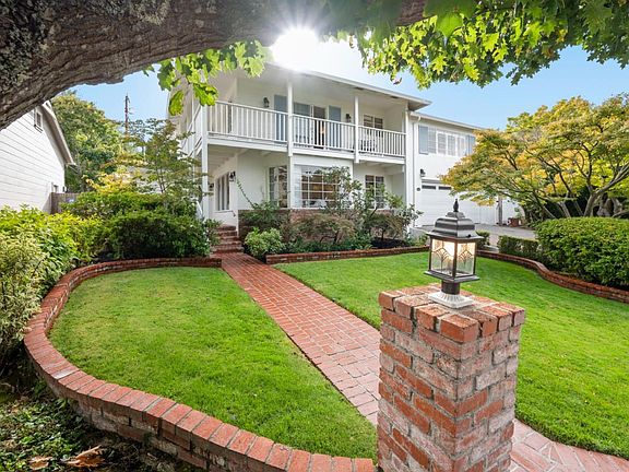 Fresh updates and classic traditional style define this Burlingame Hills home with a nod to Monterey Colonial design and a sparkling pool in the private rear yard. The two-story floor plan has 5 bedrooms and 3 baths, including one bedroom on the main level customized for an office plus an upstairs primary suite that opens to the wraparound covered front porch. Formal living and dining room combination has newly refinished hardwood floors and a fireplace, while the kitchen and family room welcome everyday living with large breakfast area and sliding glass doors to the rear yard and pool. Wood-paneled coffered ceilings, abundant built-in cabinetry, updated baths, and new carpet enhance the interiors. Located on a non-through street with direct access to hiking trails at Mills Canyon Park, this home also benefits from access to top-rated Burlingame schools and proximity to both San Francisco and Silicon Valley.