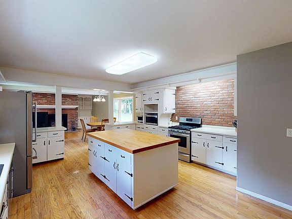 Soft neutral tonesStylish tile backsplashNewly remodeled basementInviting living spacesGenerously sized bedroomsWelcoming interiorClassic brick-faced wood-burning fireplace