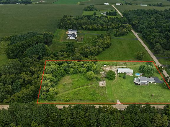 Set on 5 peaceful acres just outside Oregon, this one-owner two-story home offers a thoughtful blend of space, comfort, and utility. Built in 1992 and expanded with a substantial 16x30 addition, the home features an expansive living room anchored by a wood-burning fireplace—ideal for gatherings, movie nights, or quiet evenings. The large eat-in kitchen includes solid-surface counters with seating for four, ceramic tile flooring, and space for a kitchen table, with slide-outs leading to the back deck. A formal dining room and half bath round out the main floor, with solid six-panel doors adding warmth throughout. Additional highlights include a screened-in porch for shaded outdoor enjoyment and a finished lower level with family room, projector and screen, roughed-in bath, and a flexible office or den—plus generous unfinished space for storage or future expansion. Upstairs, the primary suite offers a walk-in shower and onyx sink, complemented by two additional bedrooms and a second full bath. HVAC improvements include a brand-new A/C system (May 2024) and a furnace less than 10 years old. Outside, the 70x25 main outbuilding offers shop space, parking for two vehicles, an additional covered open parking bay, and two enclosed storage bays—plus a versatile retreat ideal for hobbies, projects, or downtime. The backyard is designed for relaxation and recreation, featuring a deck with gazebo and a 21' round pool with surrounding deck. A covered front porch with swing welcomes guests and offers a quiet spot to unwind. With its traditional charm and modern upgrades throughout, this home offers comfort, functionality, and room to grow in a peaceful rural setting.
