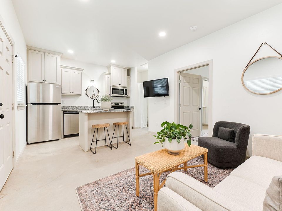 Built in 2024 this 1 bedroom with backyard space is blocks to the Plaza District and steps to McKinley Park! This bright and welcoming home features sealed concrete floors, granite countertops and stainless steel appliances in the open plan living/kitchen area. Private bedroom with large walk-in closet. Modern bathroom with granite counter and tiled tub/shower. Hard to find private outdoor area and covered front porch space. Washer/Dryer + all appliances included. 1 covered and designated parking space. Public utility usage (electric, water & trash) of $125 paid by tenant monthly. $500 deposit depending on credit/terms. One-time move in fee. Owner is a licensed broker and member of LLC. All utility bills paid Tenant responsible for internet 1 cat or dog allowed under 50 lbs with $400 pet fee Washer/Dryer and all appliances provided