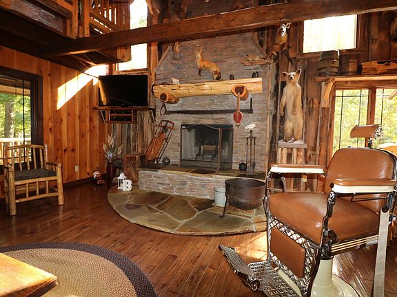 Beautiful mountain retreat, rustic home with rock outcroppings , extensive landscaping. detached man cave. Open porches with balcony deck on the rear. Extensive stone work inside, fireplace, open vaulted ceiling with beams and overlook. Front cover balcony, rear elevated deck. Very private with hardwoods and acre 11 acres. You have to see this one