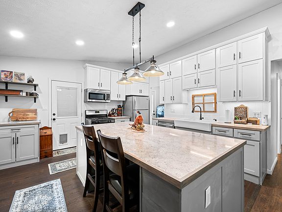 Coffee barRemodeled kitchenCozy eat-in kitchenUpdated bathroomsNew flooringNew cabinetsHuge island