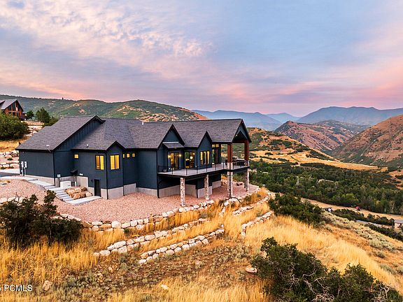 Price reduced due to urgent health issues. Motivated seller. Nestled atop a gated community in Hobble Creek Canyon, this 2022-built, 3,897 sf home offers breathtaking panoramic views and year-round mountain living. The open floor plan features vaulted ceilings, a spacious family room anchored by a fireplace, and a chef's kitchen with quartz countertops, an expansive island, and a bright dining nook framed by sweeping canyon views. The primary suite is a serene retreat with a luxurious bath and an oversized walk-in closet, while the second bedroom doubles as a stylish office with built-ins. A large deck with a built-in outdoor BBQ extends living to the outdoors. Spending hours sitting on the deck and enjoying the views will make your life better. An unfinished basement presents potential for future expansion. Minutes from the Hobble Creek Golf Course and surrounded by roads and trails for hiking, biking, and ATV adventures, this home epitomizes the joy of mountain living. We are selling the home with the adjacent building lot located just below the home. You can build another home, hold it for an investment, sell it, or keep it untouched to preserve your view.
