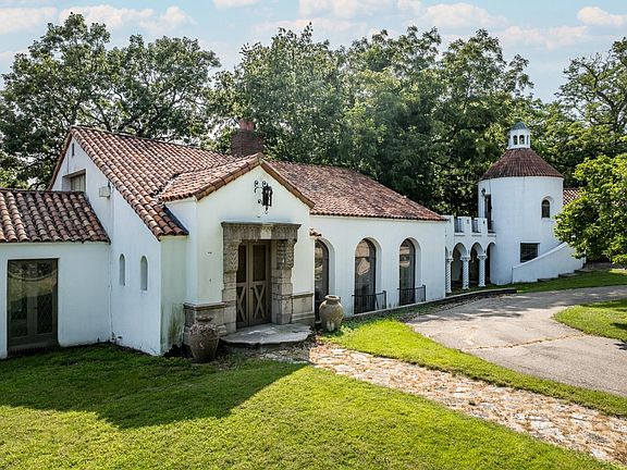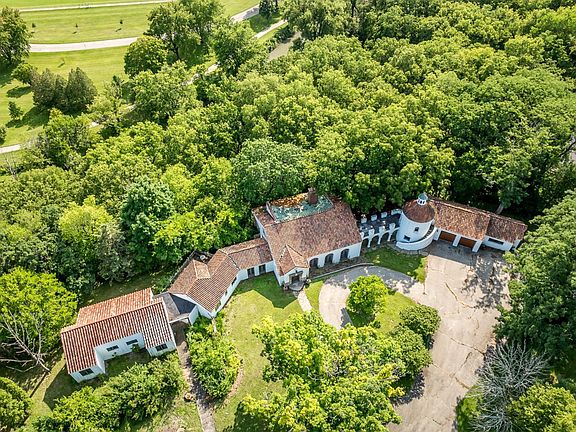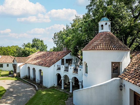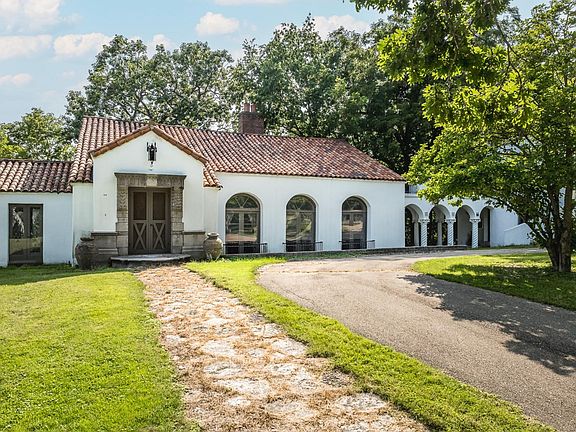 OFFERS IN HAND- PLEASE HAVE ALL OFFERS TO LISTING AGENT BY SUNDAY 8/4 AT 5PM. Here is your once in a lifetime chance to own a piece of unique property build by renowned Chicago architects Huszagh & Hill! Nestled at the end of a newly paved private lane, this exceptional property features 7 bedrooms and 6.5 baths within nearly 6,000 finished square feet of space. Set on approximately one acre of land, it sits atop a high bluff with mature trees, offering panoramic views of Yellow Creek. This Mediterranean-inspired estate, with its elegant stucco facade and Spanish tile roofs, is divided into two distinct wings: service and residential. The service wing boasts a charming two-story bell tower, which houses a circular office on the main level and a circular studio above, complete with two brand new doors, accessible via an exterior staircase. This wing is equipped with new carpeting and custom Anderson windows. It also includes a service quarters with its own full bathroom and direct access to a 788-square-foot heated garage with three stalls. Garage has two new doors, tracts and openers. Connecting the service wing to the main residence is a beautiful 28-foot loggia adorned with columns and a groined ceiling. The front of the main residence opens through double oak doors into a grand foyer. A short staircase leads to the expansive 43' x 26' living room, where you'll find a massive 10' wide stone fireplace with a cypress mantle, period iron chandelier, wall sconces, and an 18-foot high beamed ceiling. Five sets of French doors open onto a breathtaking veranda with stunning creek views. The second floor features two bedrooms and one full Art Deco bathrooms, connected by a stylish cypress balcony. The living room's double birch doors lead to a dining room with a vaulted beamed ceiling and four sets of French doors opening to the outdoors. Adjacent to the dining room is the kitchen and breakfast room, which includes a Corian center island and countertops, ceramic tile flooring, electric double ovens, and a gas cooktop. A 39-foot deck extends from the kitchen, seamlessly connecting the indoor and outdoor spaces. Further back, the property includes a laundry room, additional service quarters with a full bath, two carpeted bedrooms with a shared bath, and a 480-square-foot master suite featuring a full bath and a sitting room. This bedroom wing, added in 2000, features custom Anderson windows and bathrooms with high-end Kohler and Grohe fixtures, complemented by elegant ceramic tiling. The home is ran on three zones of forced air with brand new heating and A/C- complete with ducts- added to the great room. Schedule a viewing today and make this home yours!