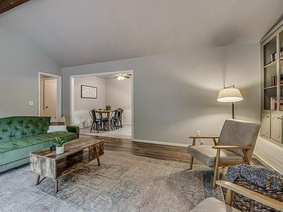 Updated 3 Bed/ 2 Bath/ 1 Living/ 1 Dining/ 2 Car Garage...You will notice the Curb Appeal from the street! Spacious Family Room with Vaulted & Beamed Ceiling, Floor to Ceiling Fireplace flanked by built-ins! The Kitchen was upgraded to Granite countertops, Subway tile backsplash, Stainless Steel Appliances, Updated Faucet & Tile flooring! Both Bathroom vanities have Quartz countertops & updated faucets. Master bedroom with Walk in closet. Laminate flooring runs through the Main area & all 3 bedrooms, so no carpet here! Sliding Doors from the living to the Open Deck & Firepit out back! Plenty of space in the backyard to entertain! Convenient to broadway extension, the Kilpatrick turnpike, restaurants and shopping!