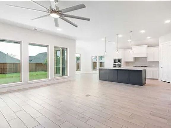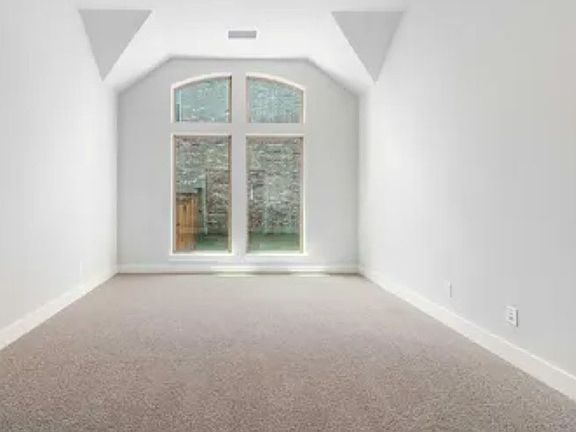 Entry welcomes with 12-foot ceiling. Game room with French doors and 12-foot ceiling off coffered extended entry. Spacious family room with a wood mantel fireplace and wall of windows opens to kitchen and dining area. Kitchen features generous island with built-in seating space and 5-burner gas cooktop. Private primary suite includes bedroom with 12-foot ceiling. Dual vanities, garden tub, separate glass-enclosed shower and two large walk-in closets in primary bath. Abundant closet space and natural light throughout. Covered backyard patio. Mud room off two-car garage.