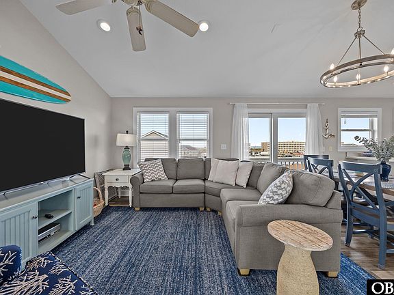 Ocean Views, Location and Convenience all in one! This 4 bedroom, 2.5 bath home is located in the heart of Kill Devil Hills with four levels of living areas delivering ocean views from bedrooms, balconies, kitchen, dining and living room. This home sits on a deep lot, away from the road as the entrance of the driveway is covered by beautiful trees when you enter. Along with plenty of parking you will find a convenient cargo lift to help with your groceries and/or luggage. The first floor offers access to the game room, wet bar, arcade games and direct access to the pool, hot tub and outdoor shower. The second floor has two bedrooms with balcony and a shared hall bath. The washer and dryer is centrally located on the second floor for convenience. On the third floor it is the same layout as the second with access to the balcony from each bedroom and a shared hall bath. You will find more of those ocean views from your kitchen windows and private deck off the dining and living area located on the fourth floor. With this homes amazing location, it makes beach life incredibly convenient as it is near shops, restaurants and only 1.5 blocks away from the private deeded beach access. Recent updates include new exterior siding, new LVT flooring, new carpet on stairs along with new furniture and decor. This home has been loved and well maintained. Don't miss this opportunity!