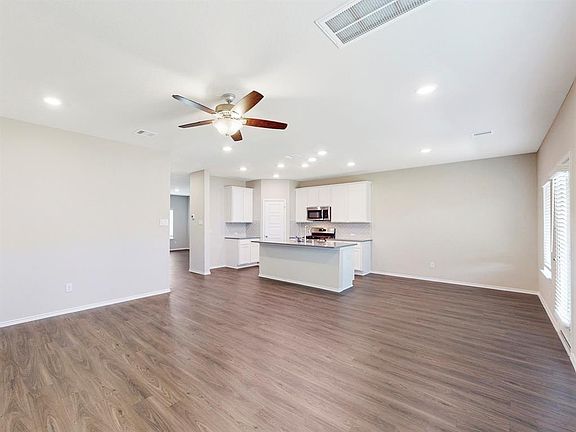 Upon entering this home through the covered porch, you will be in awe of the grand foyer. You will find a spacious flex room and powder bath immediately off the entry, perfect for an office or formal living area. Enjoy contemporary features in the kitchen, such as an oversized kitchen island, quartz countertops, herringbone subway tile backsplash, white shaker style cabinets, and stainless steel appliances. Escape to your owner's suite through a private entry off the living room. The beautiful owner's bedroom offers a bay window for extra space and natural light. Steps away, enjoy your owner's bath that boasts a large walk-in closet, double vanities, and a walk-in shower. The staircase draws you up to the second story with an impressive game room that offers lots of space for family time. A hallway connects 3 large bedrooms, each with its own walk-in closet, and a shared full bathroom. Reach out today to schedule your tour!