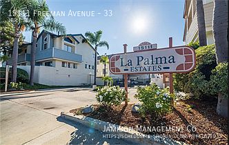 Gorgeous condo! 3 Bedroom 2.5 Bath home. Turnkey multi-level townhouse located within the gated La Palma Estates community. As you enter the main level, the inviting living room has high ceilings and is adorned with a charming fireplace. The kitchen features newer quartz countertop and breakfast bar. Adjacent is a wet bar and spacious dining room. Convenience is key and the main floor boasts a thoughtfully placed half bath, ensuring easy access. Upstairs, you'll discover the master bedroom with a full bath and two other bedrooms that share a full bathroom in the hallway. The house has laminate flooring on first and second level and carpet on the bedrooms level. The quite large laundry room is nestled next to the 2 car attached garage. This turnkey townhouse in La Palma Estates has been fully remodeled leaving no detail overlooked. Pets are considered $65 pet rent. Garbage included 2 Inch Horizontal Blinds 4+ Inch Base Boards A Building Amenities Carpet Dual Pane Forced Air Heating Fridge Garage Attached Gardener Gated Community Large Bedrooms Laundry Pool Quartz Range Range Oven Recently Remodeled Tile Trash Vinyl Planks Washer Washer & Dryer