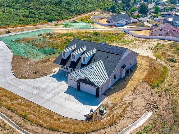 New Construction, built single level gated community set in the foothills of North Poway, (Google 15110 Larchmont for mapping, new street) Welcome to Lot 9, a two tiered large backyard yard with panoramic sunset west/southwest views and room for a guest house, pickle ball and large outdoor living pool area, served by Painted Rock Elementary, RB middle and high school, New Pointe Communities has crafted into a private hillside this spectacular enclave of 10 luxury semi custom homes, 5 homes in the first phase, only 2 homes remain. featuring 3 floorplans, high end Thermador appliances including a 48 inch range cooktop, 42 inch dual column refrigerator/freezer, wine chiller and dishwasher. Custom white shaker cabinets with soft close hinges and drawers, generous center islands, and walk in pantry. All homes feature owned expandable photovoltaic solar systems. First phase completion is May 2024. Enjoy panoramic views from several of the large well spaced homesites built with covered outdoor sitting areas. Other features such as 3 car garages, tankless water heaters, led lighting provide for state of the art efficiency. Early buyers may upgrade flooring, backsplashes, flooring and shower tile. Mid May move in, Don't miss out! No mello roos. Google Larchmont in Poway for access