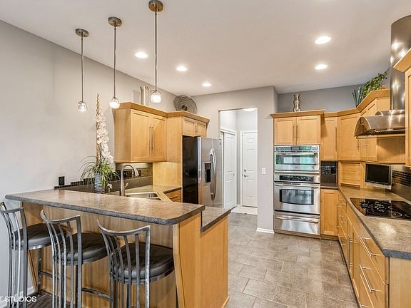 Come check out this one owner, custom Harrington built walkout ranch. Immediately walk into a spacious living area with 10' ceilings, a fireplace centered between built-ins. Beautiful kitchen with maple cabinetry along with plenty of working space. Just off the dining area is a very bright sunroom that you will surely want to spend much of your time. The master bath has double sinks and nice sized walk-in closet. Laundry is currently in basement with a laundry chute (chute in master bath), but there are also built with laundry hook-ups on the main level if you would prefer to miss out on the fun of the laundry chute. Basement features a living area, a bedroom that is currently being used as an office and a ¾ bath. There is also plenty of storage! Really nothing to do here but move in. This is not your cookie cutter western suburbs ranch - this one is a cut above. You will be able to tell the difference in quality even from the driveway. New roof 2020.