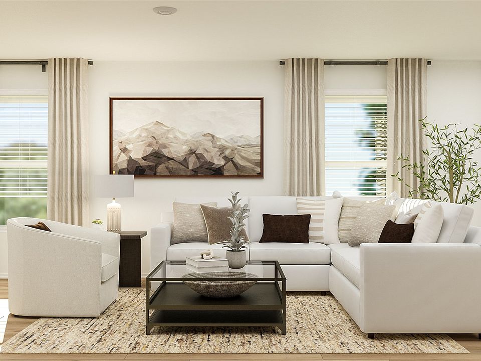 Lennar Watermill Collection at Rancho Canyon - Chestnut II Floorplan- This single-story home has a classic layout with everything a growing family needs. The open living area includes a family room, dining area and modern kitchen which has a door to the backyard. Three bedrooms connect to the living area, including the owner’s suite, which has a private bathroom and walk-in closet. THIS IS COMPLETE AUGUST 2024!
