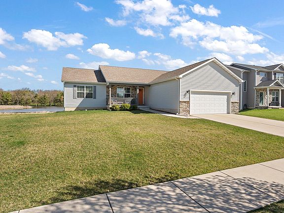 Welcome home! Located in an ideal location with quick access to both route 41 and IL394, this charming ranch with a finished basement and no rear neighbors is the one you have been waiting for! Built in 2014 and located in the desirable Enclave neighborhood, this home is second to none. Upon entry, vaulted ceilings greet you, creating an airy and inviting ambiance in the open-concept layout. The living room seamlessly connects to the eat-in kitchen and dining area, adorned with granite countertops and ample cabinetry. Step out onto the rear deck from the kitchen and soak in the pond views. The thoughtful split floorplan ensures privacy and convenience with two bedrooms, a full bathroom, and oversized laundry room on one side, while the luxurious primary suite awaits on the other, complete with a walk-in closet and en-suite bathroom. Downstairs, the finished lookout basement offers an additional oversized living space, a generously sized bedroom, office with view of the pond, full bathroom, and large unfinished storage space. This home boasts luxury vinyl flooring and features a tankless water heater for added convenience. Don't miss your chance to call this house home!