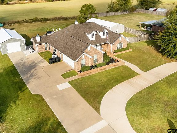 YOUR DREAM HOME AWAITS YOU IN LINDALE, TEXAS! Beautiful Brick Home with Pool, Shop, and Pool House on .675 Acre Welcome to this stunning 4-bedroom, 2-bath brick home that blends comfort, space, and country charm centrally located with quick access to everything in town! Step inside to find a spacious formal dining area and a large family room centered around a cozy wood-burning fireplace — perfect for gatherings and relaxing evenings. The kitchen features a breakfast area with a lovely bay window overlooking the backyard, providing the perfect spot for morning coffee with a view. The primary suite is a true retreat, offering a separate flex room ideal for an office, library, or sitting area. The ensuite bath includes a large walk-in closet, a walk-in standup shower, and a separate soaking tub, along with dual vanities and generous space for comfort. Enjoy outdoor living at its best with large covered patios in both the front and back, a fully fenced yard, and serene views of pasture and distant woods. The highlight of this property is the beautiful in-ground pool, complete with color-changing lights, two water fountain sprayers, a shallow beach entry with built-in seating, and a wide concrete walkway with a lounging area surrounded by attractive landscaping. A spacious pool house offers versatility and convenience — featuring spray-foam insulation, an open layout with sink, cabinets, counters, and a full bath with open shower and hot water. For hobbies or extra storage, you’ll appreciate the large shop with full electric service, a half bath, garage door with opener, and side entry access. With a 2-car garage, generous living spaces, and exceptional outdoor amenities, this property offers the perfect balance of function and relaxation — all set on a .675-acre lot with beautiful natural views and a prime location close to schools, shopping, and dining in Lindale.