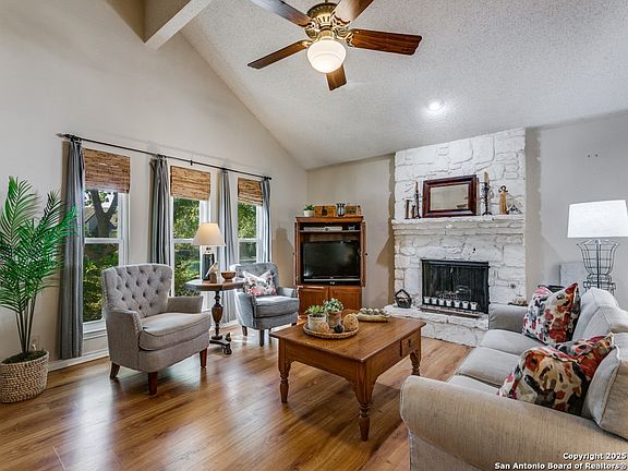 Discover this stunning garden home featuring a sparkling Keith Zars pool, nestled in the prestigious Hidden Forest neighborhood. Enjoy luxury laminate flooring and elegant ceramic tile throughout-no carpet anywhere! The kitchen and bathrooms showcase exquisite granite countertops, adding a touch of sophistication. Relax in the inviting living room, highlighted by a striking rock fireplace and designer bamboo shades that complete the elegant look. Located in a community known for its excellent schools, this home offers both style and convenience.